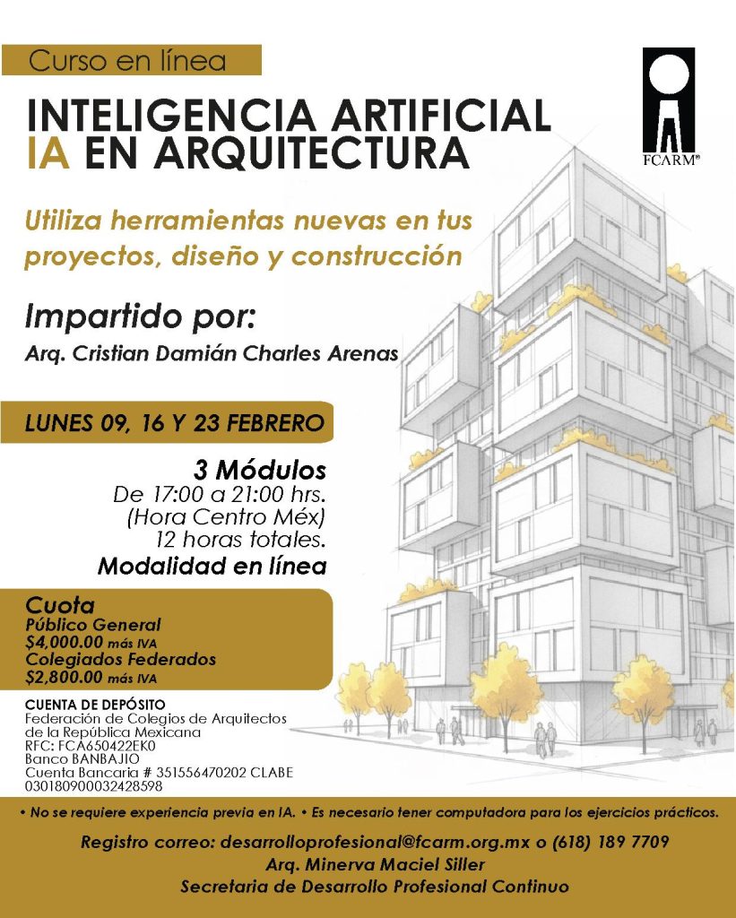 - • Requisitos: No se requiere experiencia previa en IA, pero sí conocimientos básicos de diseño arquitectónico y habilidades informáticas. Se requiere acceso a una computadora para los ejercicios.